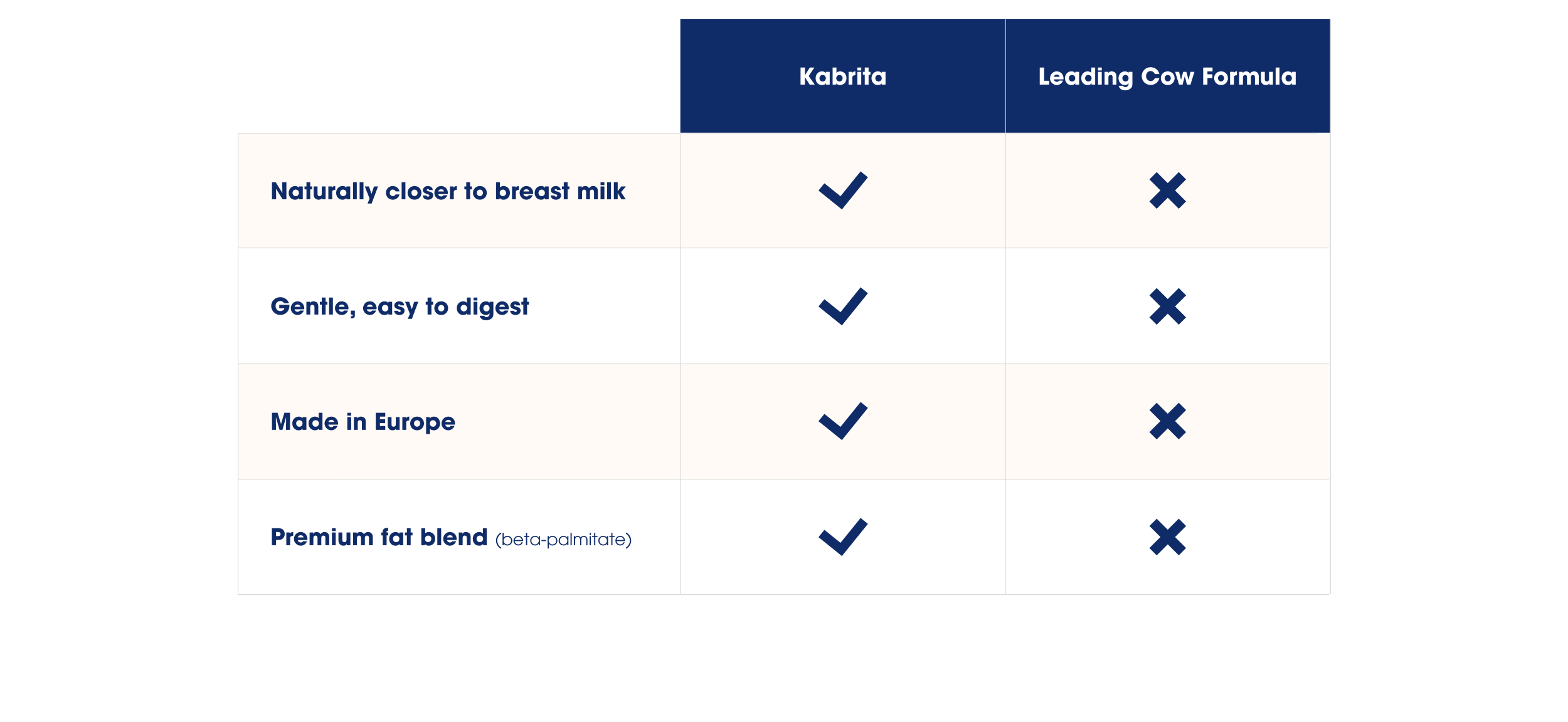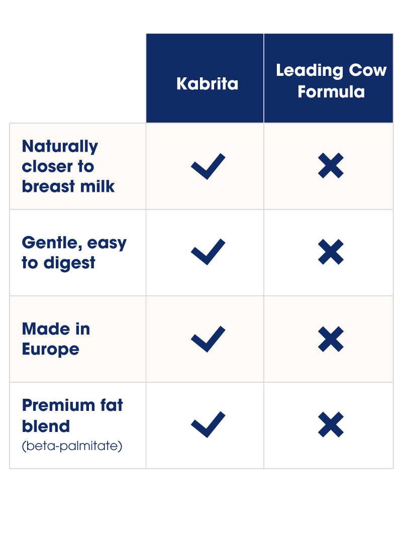 Kabrita's infant formula is gentle, easy to digest, and naturally closer to breast milk for babies aged 0-12 months.